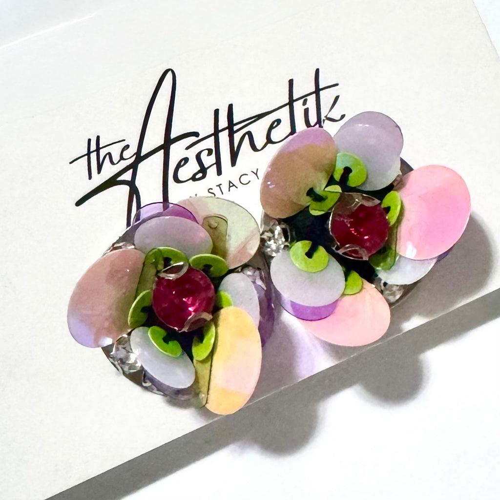 Rhinestone and Sequin Floral Cufflinks