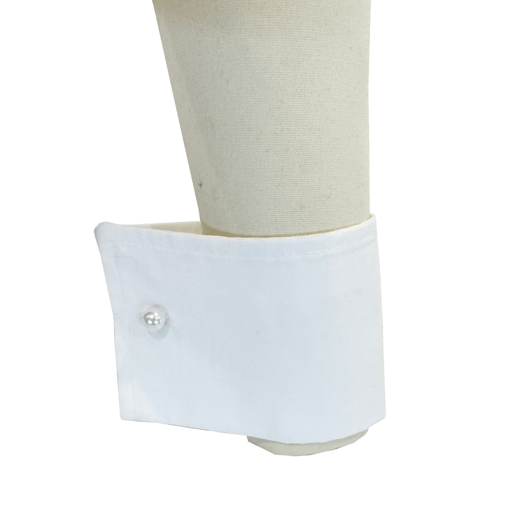 The cuffs measure 4 ¼" tall and come with a complementary set of faux pearl cufflinks. The cuffs are designed to fit wrists measuring 7 to 9 inches in standard size. For a smaller or larger wrist, please reach out. Custom sizing is available!