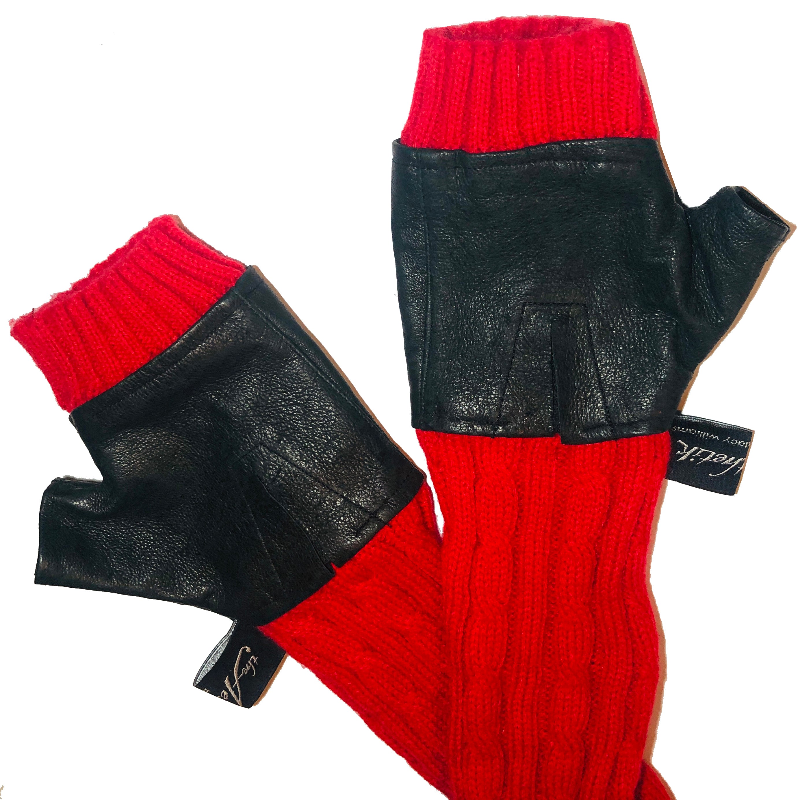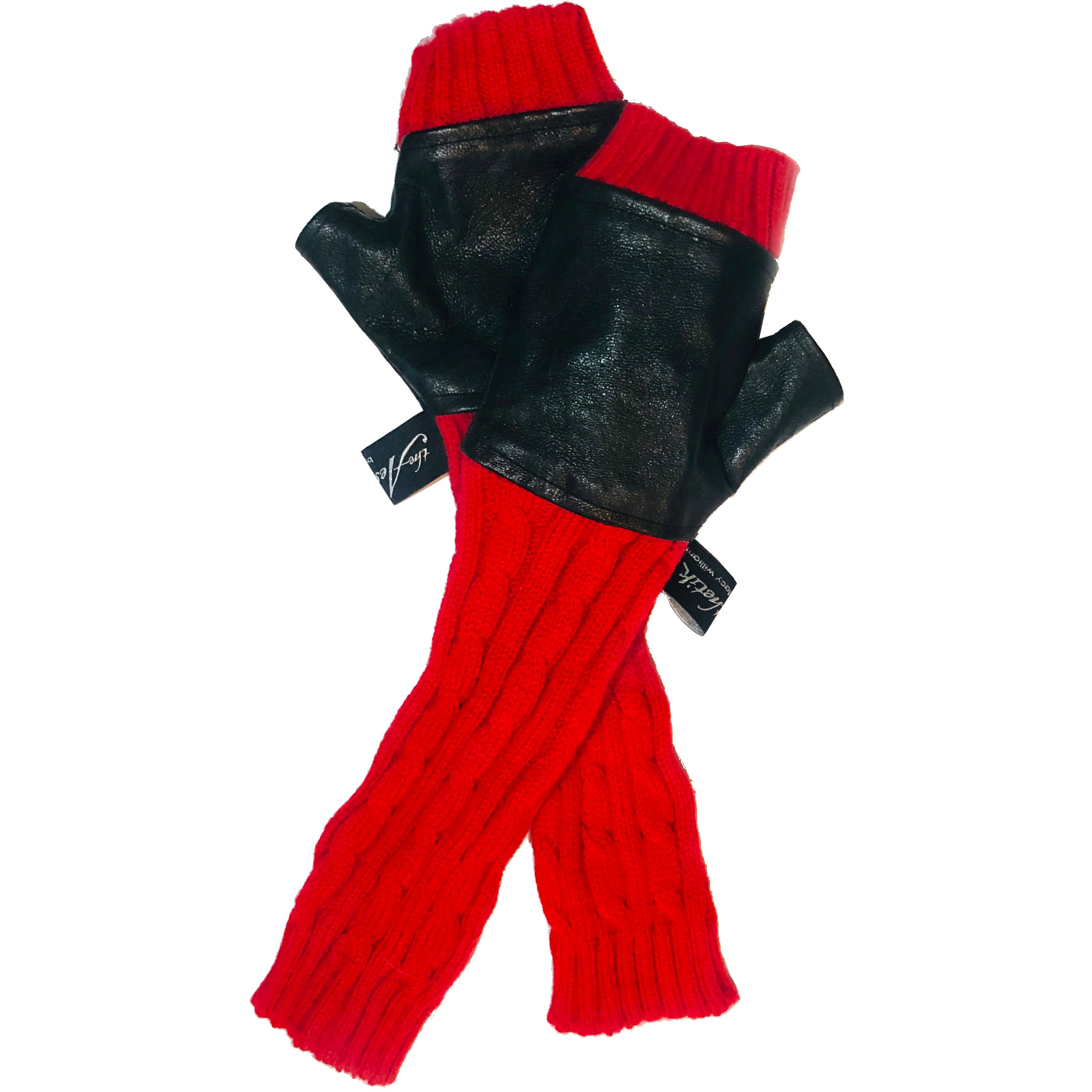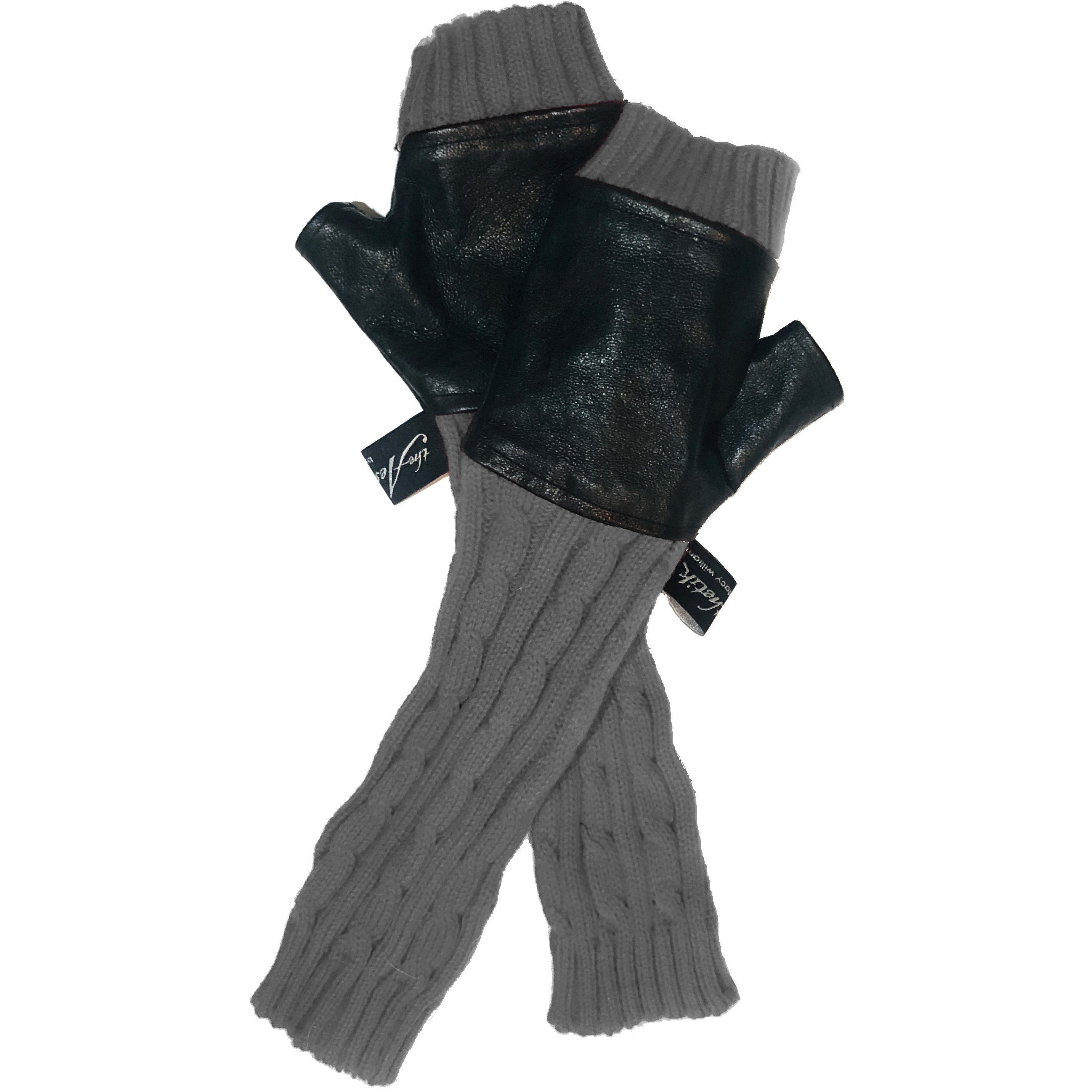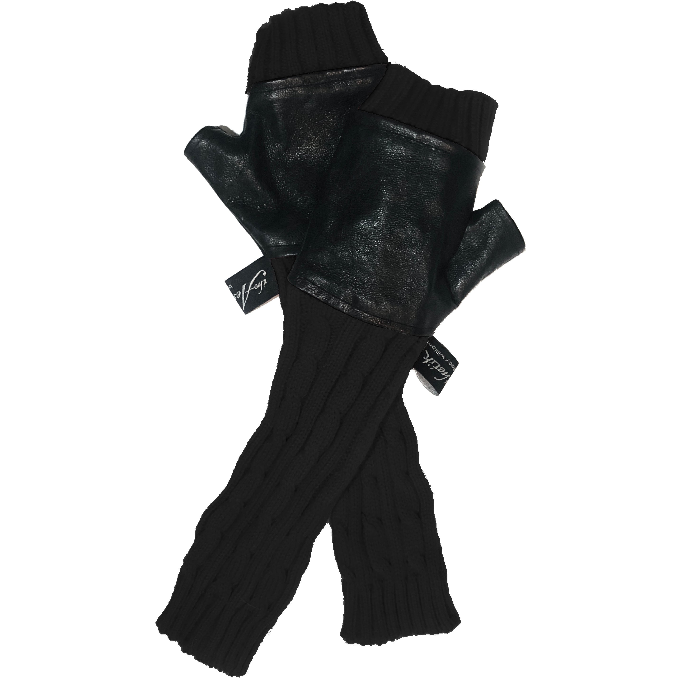 Made from supple high-quality leather; the gloves form to your hands like a second skin and are trimmed in soft cable knit. No need to wear them just because you are cold. Put them on with a short sleeve top and show your true style. The knitted portion is approximately 9 ½ inches in length and sits below the elbow at mid-forearm. Cable knit patterns may vary.